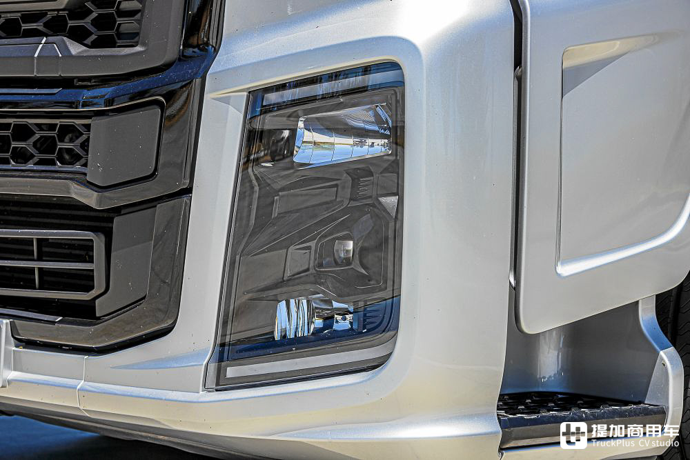既然要黑,那就黑到底。福特F-MAX Blackline Edition的前面罩采用盾形设计,整体几何效果类似倒梯形,有助于提升前脸的力量感。在此基础之上,前面罩内部的格栅设计有凸起,并且整体熏黑,大大提升的车辆外观的肌肉感。