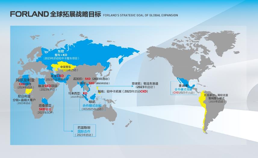 未来,依托福田汽车集团海外工程技术中心的实力,深入研究海外市场法规和用户需求,建立12个海外KD制造基地,形成海外区域制造能力,构建以工程车、轻卡和微卡为销量基盘、专用车为补充的销售结构。进一步巩固工程车出口第一的地位;全面进入小卡市场,突破散户及企业自备类客户;扩大轻、中卡核心市场数量,拉升市场占有率;聚焦末端物流,通过高价值微卡和产品差异化竞争,提升日韩传统市场的绝对销量。