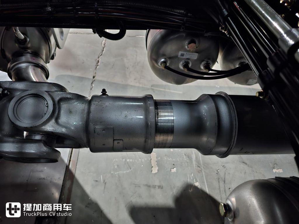 传动系必然少不了传动轴,乘龙H5V 6X4牵引车的两根传动轴也全部采用了铝合金材料来减轻重量,当然目前重卡铝合金传动轴的技术也相对成熟,品质无须担心。