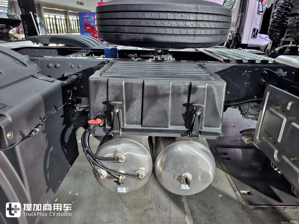 油箱、储气筒、大梁工作台、后处理系统外壳,这种常规的轻量化零部件在乘龙H5V极致轻量化车型上是比比皆是的,但是后面的配置,绝对是行业内的独一份。