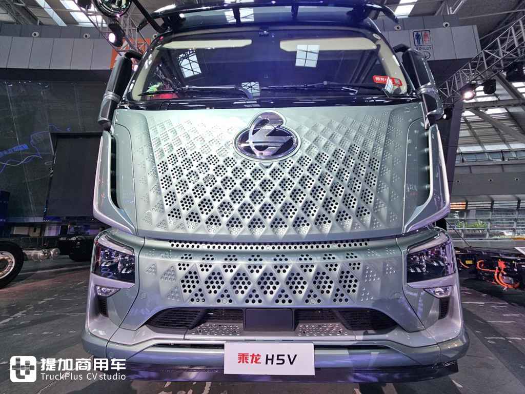 对于乘龙H5V的外观,用惊艳二字形容毫不夸张,它采用的是乘龙最新一代设计语言,国风中国龙元素的加入,赋予了该车龙鳞铠甲般的外观。错落有致的菱形格栅搭配上时尚的翡翠绿涂装,以及银色镀铬勾勒的边缘线条,为整车增添了几分年轻化气息。