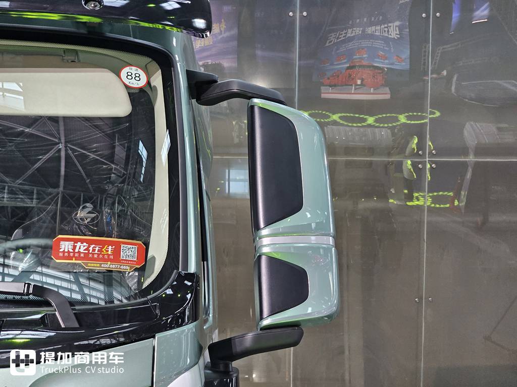 一体式外壳的后视镜可以带来更高的集成度,所以乘龙H5V的后视镜配置有电动调节和电加热功能,为驾驶员的行车带来便利。镜壳采用车身同色漆面,搭配磨砂黑与银色亮条十分的美观,圆润的边角设计更有利于降低风阻。