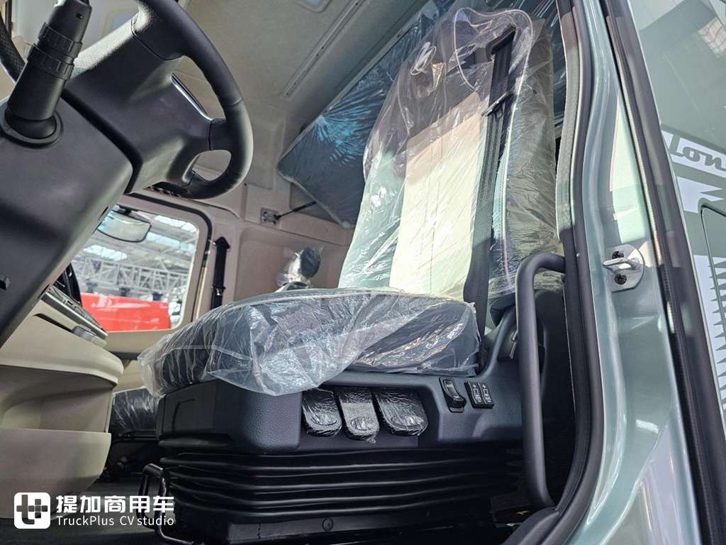 作为一款高端重卡,乘龙H5V的车内座椅采用了多功能气囊座椅,带有软硬阻尼、腰部支撑等多项调节功能,如果用户进一步追求舒适,乘龙H5V还可以提供来自格拉默的通风加热气囊减震座椅。