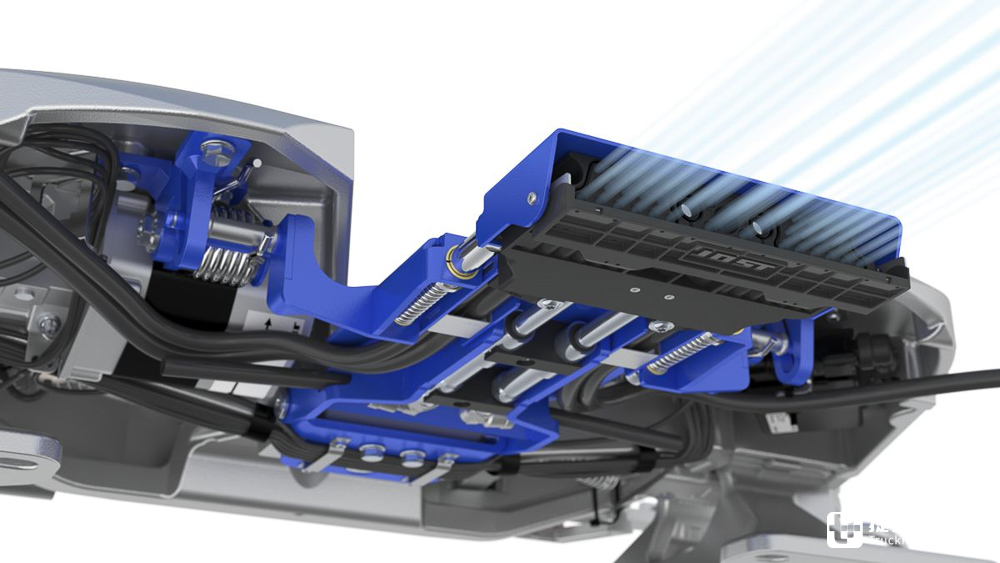 那么,遥控卡车如何连接挂车呢?不用担心,车辆采用了JOST公司开发的KKS全自动鞍座系统,它能实现全自动的鞍座锁定/解锁。同时,JOST KKS系统采用了新的电气连接座,不用像传统卡车那样手动对插电气线缆,KKS系统能够全自动完成电气连接。