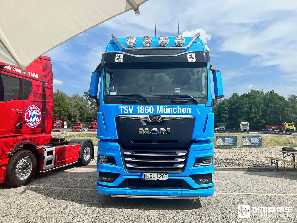在这台拜仁TGX的旁边,还有一台与慕尼黑1860足球俱乐部联名的蓝色TGX