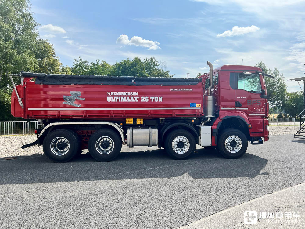 这台TGS 35.470 8x4自卸车的上装由德国EUROMIX公司打造,货箱主体采用高强度HARDOX钢制成。除自卸车外,该公司还生产水泥搅拌车、水泥泵车等建筑车辆。