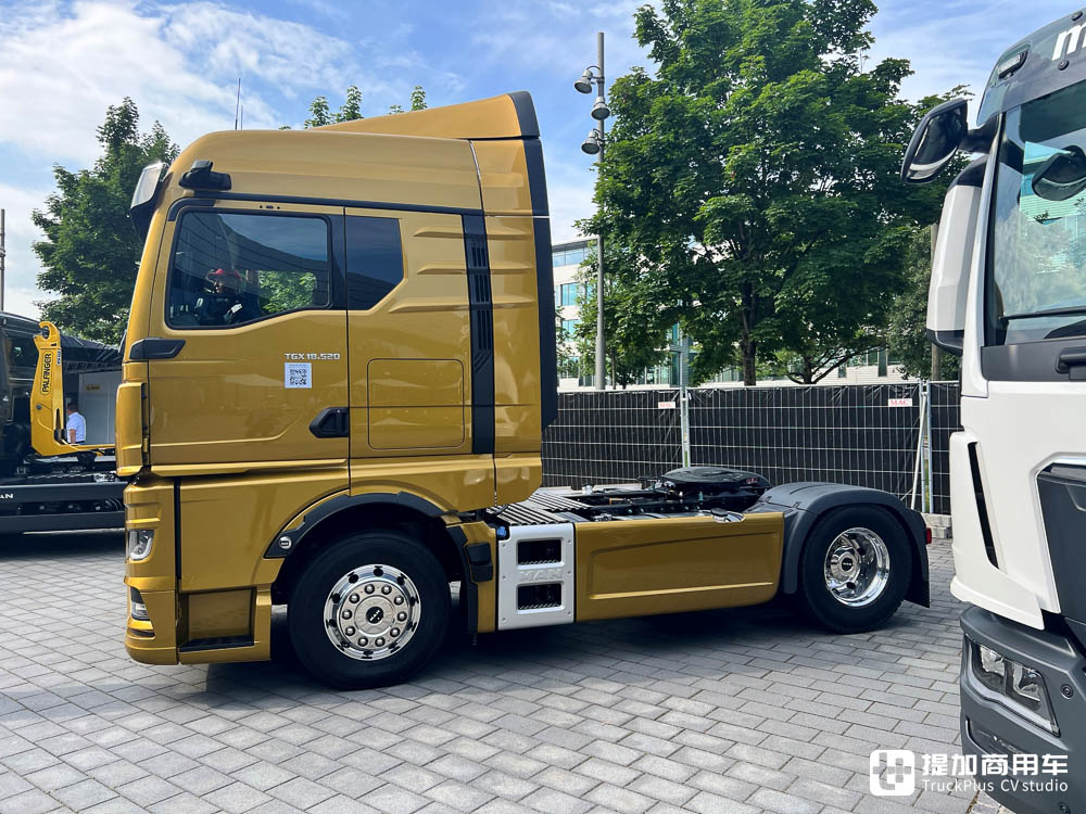 乍一看,这台TGX没什么特别的。但如果仔细看看车门上的铭牌,你就会发现它的型号是18.520。这代表车辆采用了新一代的D26柴油发动机,相较于上一代机型,发动机马力提升了10匹,扭矩提升了50牛米,因此铭牌上的数字也就从510变成了520。