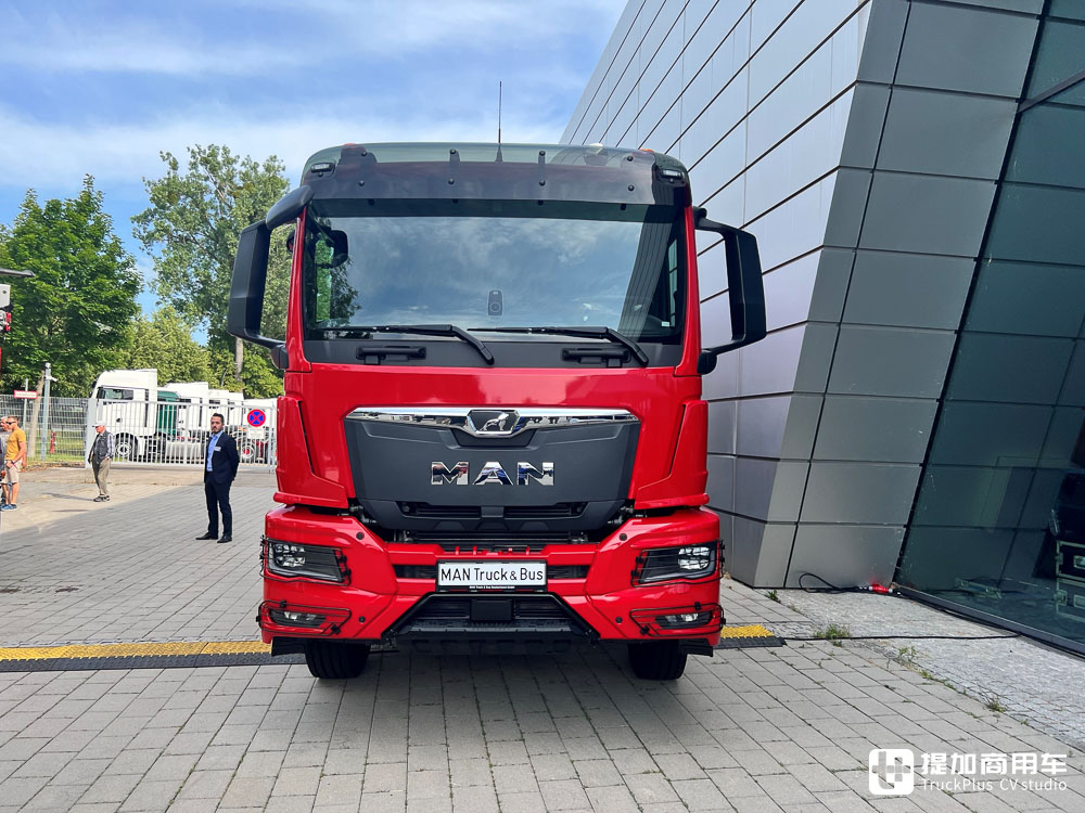 新一代TGS已经在欧洲普及开来。上图中车辆采用了新一代曼恩TGS标志性的金属漆,更富坚固金属的质感。为了适应工厂运用,车辆配备了大灯保护网,将LED大灯和雾灯覆盖起来。毕竟,LED大灯虽然性能不强,但坏了更换起来可不便宜。