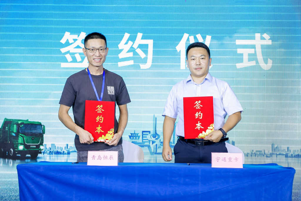 可靠的产品与专业的服务持续赢得客户认可,活动现场宇通重卡与日照振邦汽贸有限公司、青岛恒辰汽车销售服务有限公司等大客户举行签约仪式,相信在宇通重卡的助力下,客户的出勤率与盈利能力将进一步提高,山东地区的物流运输行业也必将加速迈向绿色时代。