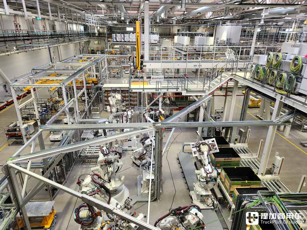 由Northvolt制造的电芯将被运至这家全新的电池组装厂,之后交由斯堪尼亚进行组装。在工厂中,斯堪尼亚会将电芯组装成电池模组,之后和功率模块、电池管理系统等电气部件一起组装成电池包。电池组装厂就在卡车生产厂旁边,因此组装好的电池包可以直接装车,属实方便。