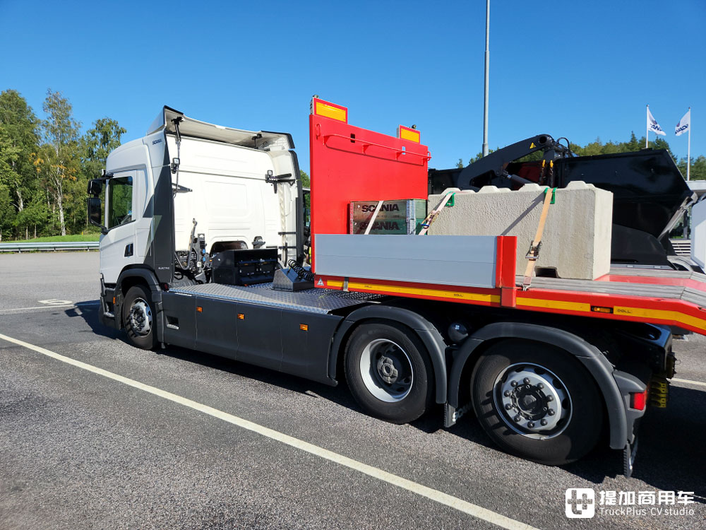除了40 R这种重型选手,斯堪尼亚还展出了不少25 P系列纯电动卡车。上图中是25 P 6x2牵引车,它的轴距非常非常长,是一台由底盘车改造而来的牵引车。该车配备了斯堪尼亚的GE281电动总成,此前见它都是在混动卡车上。除了与内燃机结合使用之外,GE281也能单独拿出来当作电驱总成。