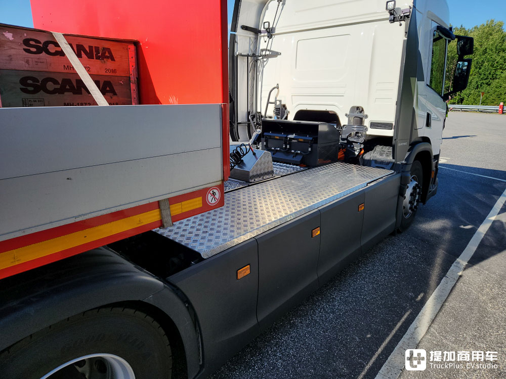 斯堪尼亚40 R的轴距非常非常长,这么长的轴距主要是为了容纳巨大的电池组。468千瓦时的可用容量能为40吨总重的车辆带来350公里的续航里程。而对于北欧常见的64吨总重车辆,该车的续航里程为250公里。
