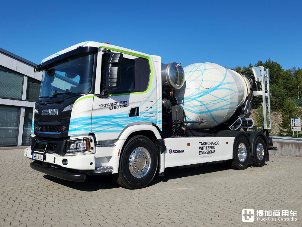 此外呢,斯堪尼亚还带来了一台6x2驱动的25 P纯电水泥罐车,该车配备了来自XT系列的不锈钢保险杠,同时配备了大灯护网,增强车辆前部的保护性能。斯堪尼亚为25 P系列车型提供了多种不同的电动取力器,也就是用单独的电机来推动上装运动,功率覆盖30千瓦到260千瓦。