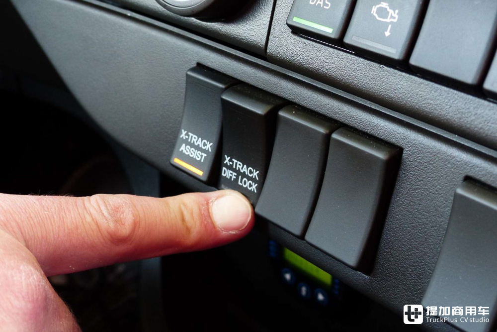 X-Track静液压驱动系统的启用相当简单:驾驶室内部设计有两个按钮,其中左侧的“X-TRACK ASSIST”按钮用于激活系统,可在需要时快速开启。右侧的按钮则用于激活“差速锁”,当单侧车轮打滑时,该系统将断开该车轮的系统连接,实现扭矩补偿。