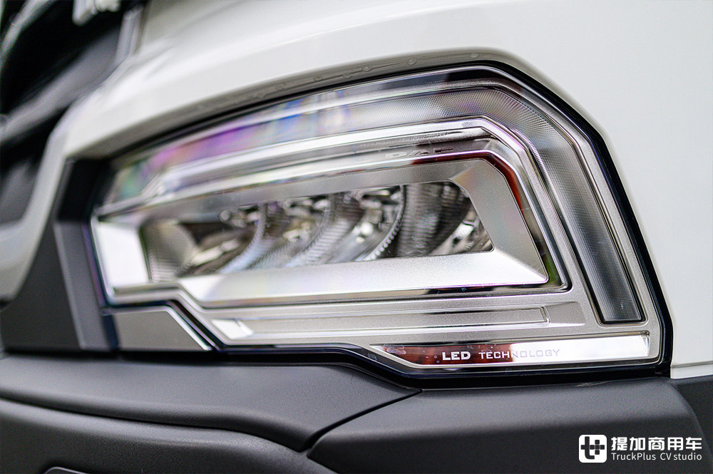 在不锈钢保险杠上方,新一代的LED大灯引人注目。日间行车灯位于大灯轮廓上方,而大灯中部则是LED主光源。相较于传统卤素大灯来说,LED大灯的寿命更长,同时照明效果更好。达夫XFC系列车型全系标配LED大灯,算是做到了技术普及。