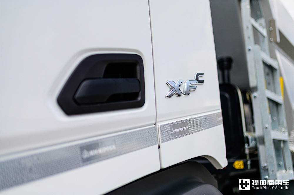 驾驶室侧面带有XFC字样的车辆铭牌,其中字母C代表了Construction,即建筑。它与公路版XF车型的区别在于:车辆配备了加强保险杠、加强车架等配置,同时提供了更多的底盘形制,适应不同领域的需求。