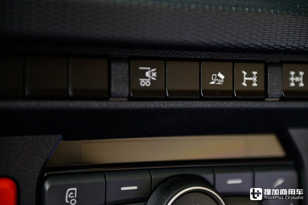 差速锁采用按钮控制,设计在触摸多媒体屏幕的下方区域