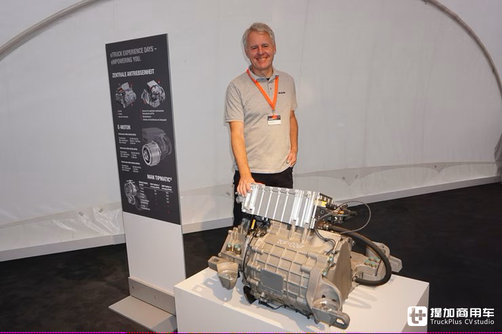 驱动方面,曼恩eTGX与eTGS没有采用当下时髦的集成式电驱桥,而是采用了传统的中央驱动系统。针对新时代的需求,曼恩为eTGX与eTGS开发了全新的中央电驱动总成,它由电动机、逆变器、变速箱等零部件组成。电机可选333匹、449匹、544匹三个马力段,相应的最大扭矩为800牛米、1150牛米和1250牛米。