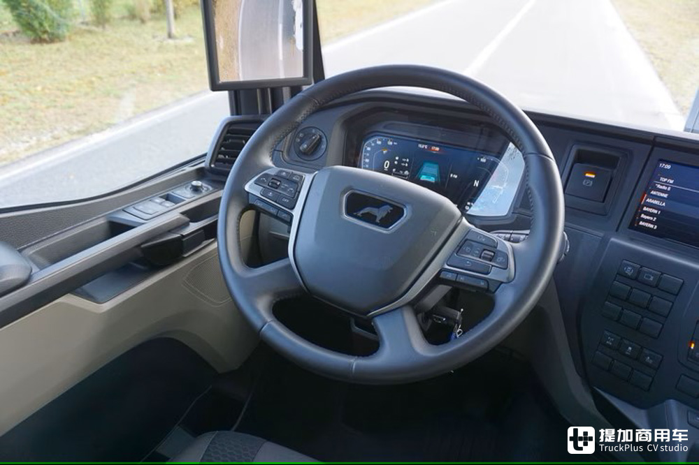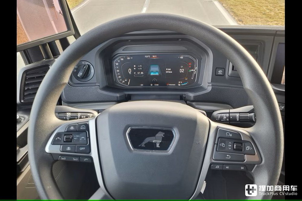 进入驾驶室后,驾驶员会对曼恩eTGX和eTGS感到非常的熟悉。毕竟,这两款车型基于柴油卡车发展而来,其内饰、操控方法也和柴油卡车基本一致,通过怀挡来切换档位,同时还保留了传统机械钥匙,拧动通电。