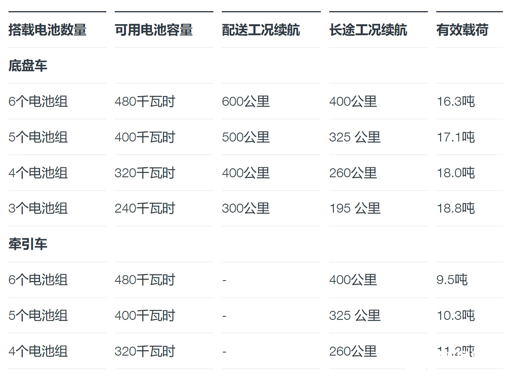 续航里程方面,曼恩eTGX采用理想电耗折算续航里程,配送工况的理想电耗为0.8千瓦时/公里,长途运输工况的理想电耗为1.2千瓦时/公里,具体请参考以上图表。