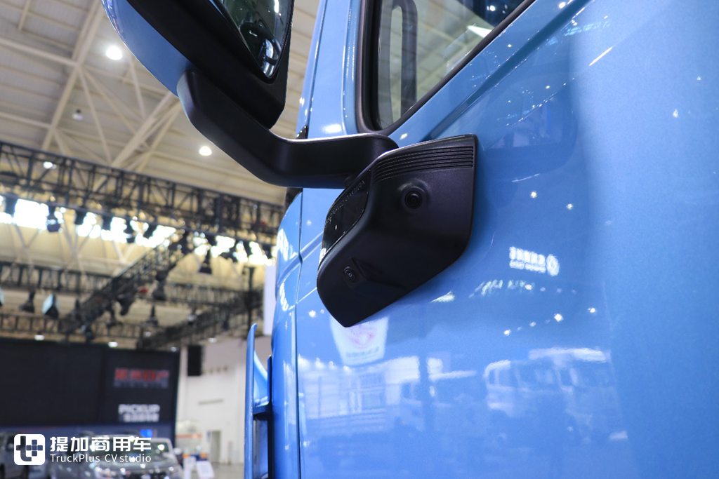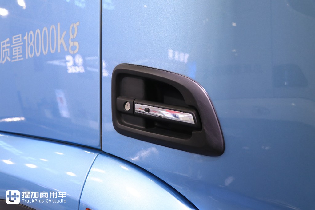 尿素箱的位置布置在车辆的前方,容量45L,这种设计便是新平台的好处。尿素箱前移能为车辆两侧大梁带来更加充足的空间,提升大梁利用率,方便用户后期在大梁两侧加装水罐、工具箱等行车附件。