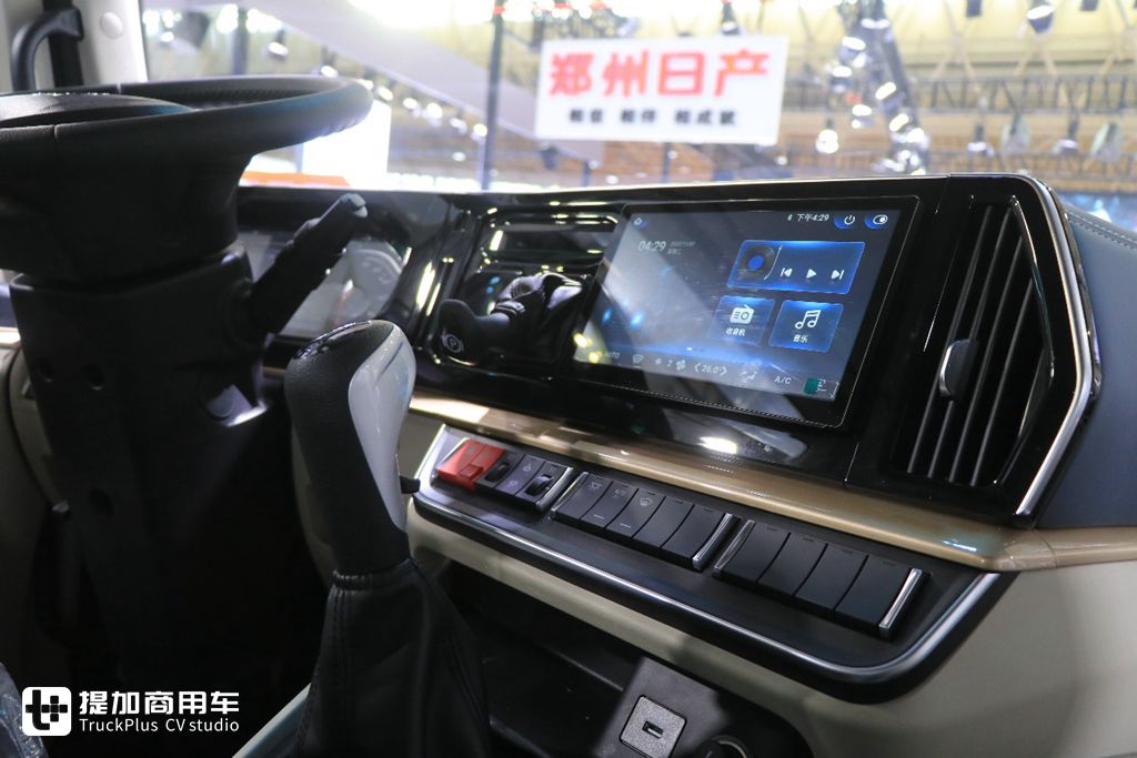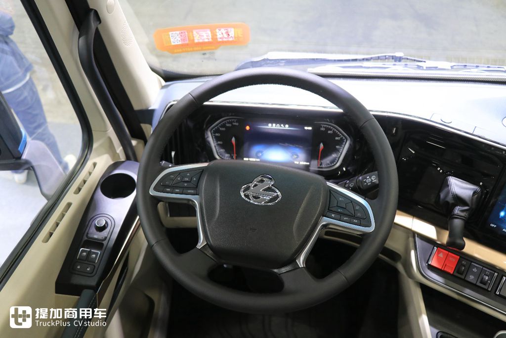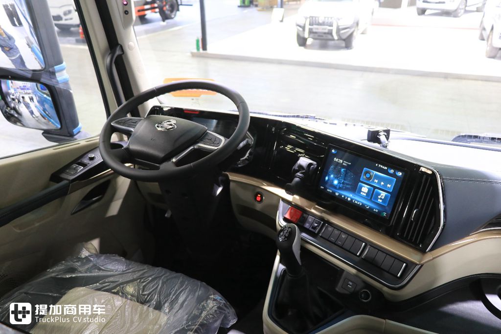 作为一款全新的车型,乘龙H5V的工作台进行了重新设计,呈现环绕于驾驶员的造型,台面位置降低,为驾驶员营造良好驾驶视野。工作台面板采用钢琴烤漆工艺,周边皮革包裹,高端还易打理。