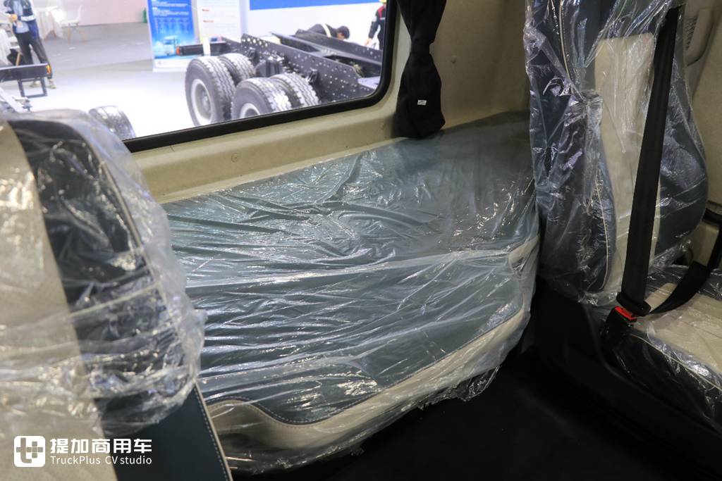 乘龙H5V的卧铺共有三种选择,实拍车型为基础款,卧铺宽度60cm,再宽一点就是驾驶室后方加宽,如果用户觉得不够乘龙H5V还可以提供长达1.2m的拼接式卧铺。