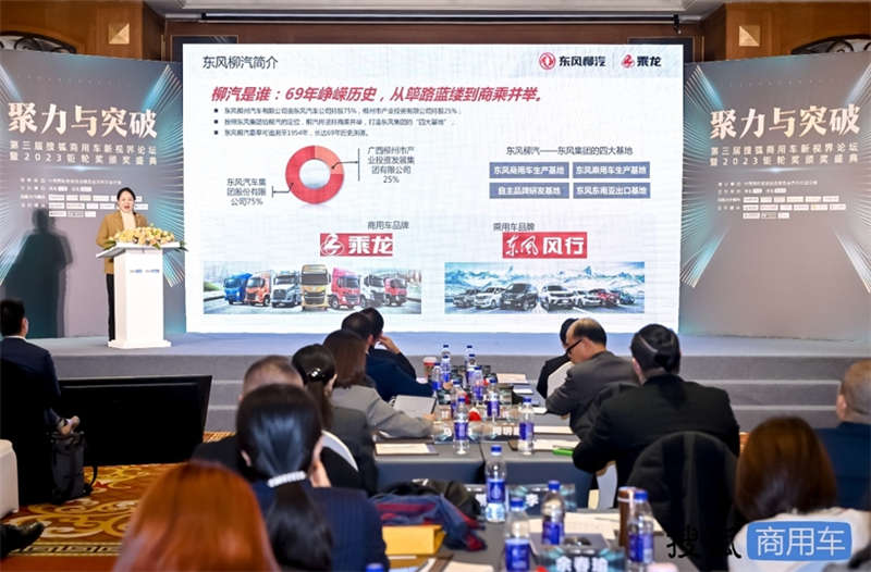 12月14日,以“聚力与突破”为主题的第三届搜狐商用车新视界论坛暨2023钜轮奖颁奖盛典在北京盛大开幕。东风柳汽作为优秀企业代表,受邀进行经验分享。
