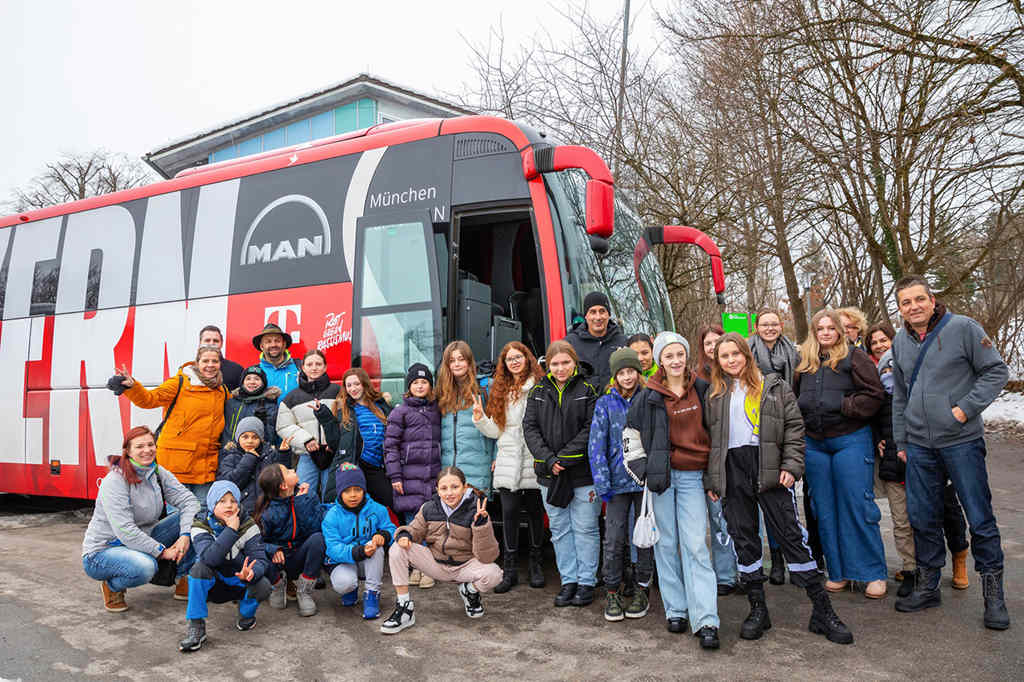 【2024年1月9日,慕尼黑】圣诞期间,24名来自阿默尔湖-莱希河地区SOS儿童村的小球迷们,乘坐服务于拜仁慕尼黑俱乐部的曼恩巴士,前往安联球场参观。
