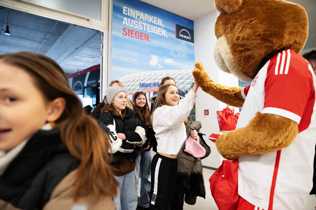 刚一抵达,孩子们就收到了拜仁慕尼黑吉祥物伯尼送上的“见面礼”— 装有巧克力和小号足球的“童”款福袋。在后续的独家参观中,俱乐部也特意安排了干货满满的专业知识讲解。孩子们在返行前,还能在拜仁慕尼黑俱乐部的纪念品商店中任意挑选一份心仪的礼物, 作为本次特别之旅的纪念。