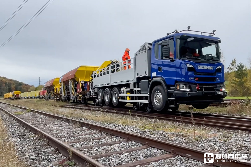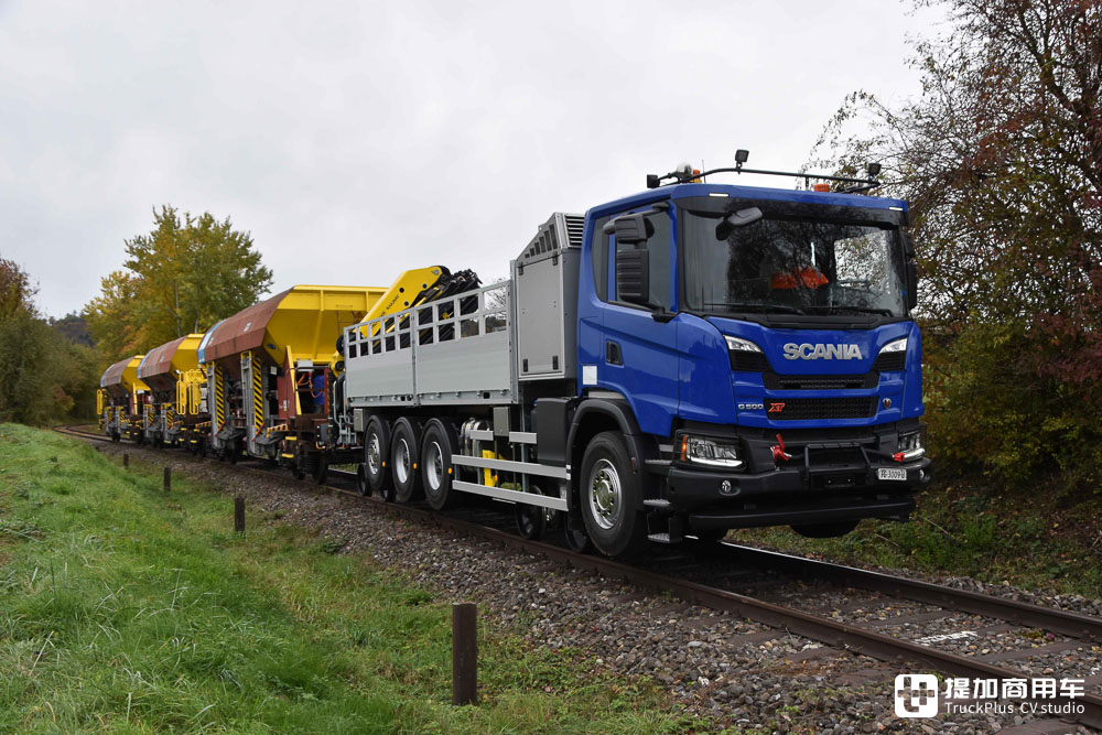能在铁轨上跑的斯堪尼亚工程车!您见过吗?路轨两用版斯堪尼亚G 500 XT实拍
