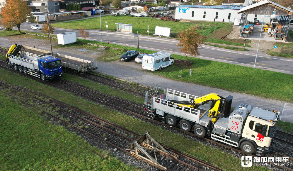 今天,我们文章的主角就是两台公路、铁轨两用的独特斯堪尼亚卡车,这类车型也被称为路轨两用卡车。在各国的地铁、火车等轨道交通领域,你都能找到类似的路轨两用卡车。有的车型担负消防任务,保障乘客生命安全。有的卡车则负责对铁轨、接触网等基础设施进行维护保养,从而保障轨交正常运行。