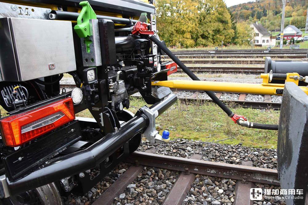 除了单车运行之外,车辆也能够牵引其他车底。不过,这两台斯堪尼亚G 500 XT都没有配车钩,需要采用牵引杆进行转接,由车尾的牵引座或球头进行拖拽,并预留有电气接口及工作灯。