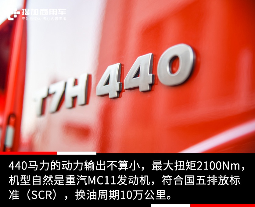 440马力的动力输出不算小,最大扭矩2100Nm,机型自然是重汽MC11发动机,符合国五排放标准,换油周期10万公里。