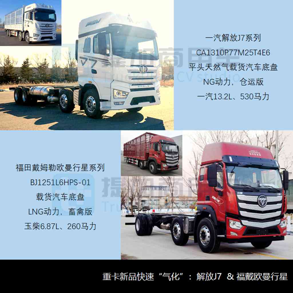 自2023下半年牵引市场掀起新一波燃气热潮后,NG动力重新成为各大车企在内燃机新品领域的聚焦对象,甚至堪舆电动化相媲美。或是受到“正向波及”,2024年首月期的重卡类新品也快速“气化”,其中NG动力占比高达1/3,顺利登顶历史最高点,也是近三年的单月期首次来到两位数。本月期共有五家车企的十个产品谱系采用NG动力,包括上文的江淮格尔发X5,以及福田戴姆勒欧曼银河/行星/昆仑、一汽解放J7/JH6/JK6、东风柳汽乘龙H5和陕重汽德龙L5000/陕商用德御翼3S系列。以下仅举两例: