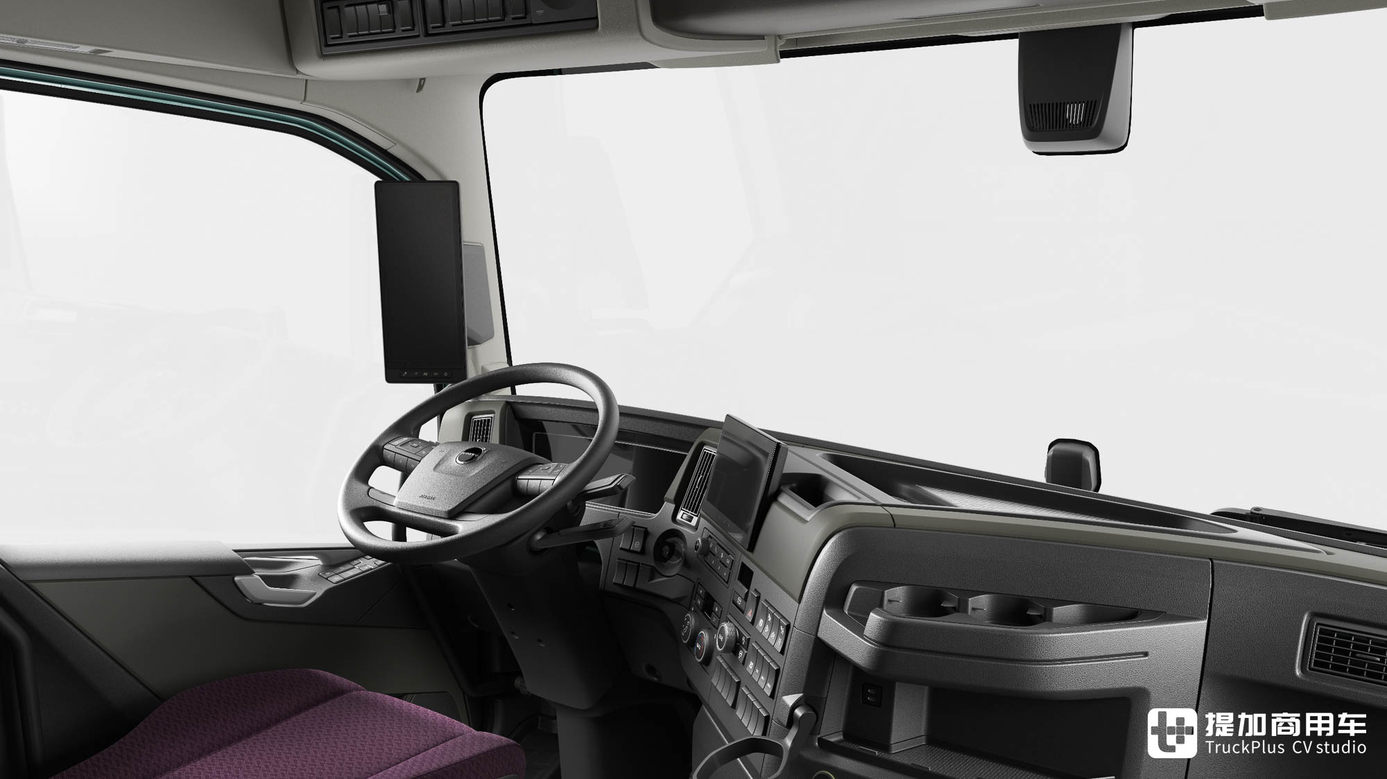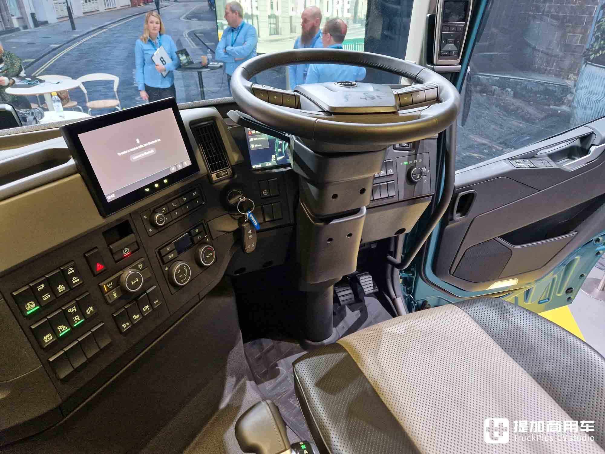 传承自FM的大角度可调转向柱,使方向盘能够调节至近乎平面的状态,使驾驶员更加轻松的上下车。同时,全尺寸的主驾驶气囊减震座椅也被保留,I-Shift变速箱挡杆位于座椅侧方,便于驾驶员操控。