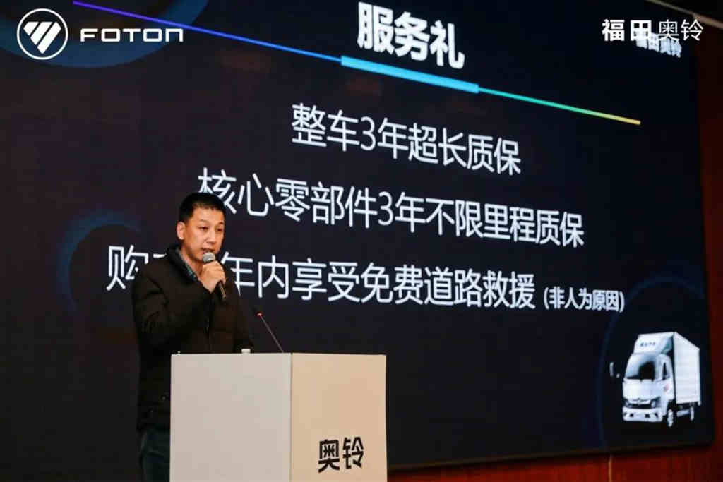 现场,奥铃营销公司河北大区经理陈浩然公布了奥铃V卡订车四重好礼。整车3年超长质保,核心零部件3年不限里程质保,购车2年内享受免费道路救援(非人为原因)。当日订车1500元订金可抵4000元,购车即送价值188元定制黑卡,包含4桶尿素/1桶机油+100元维修保新抵扣券,享2年5万免息,厂家最高贴息3100元。增/荐购还可享受1000元/台的奖励。