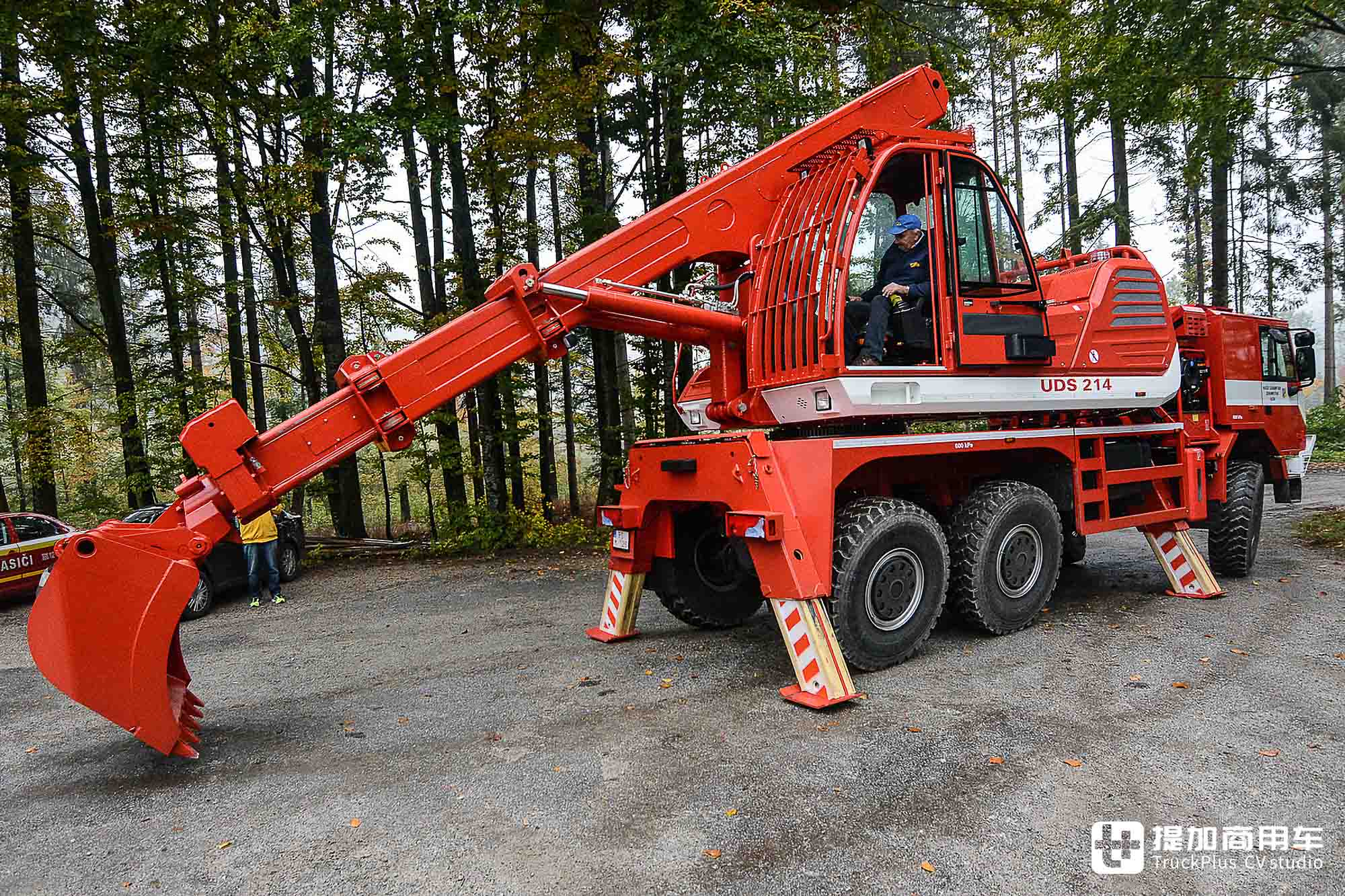 在森林火灾、灾难救援等紧急情况下,轮式挖掘机有着宽泛的适用场景。它们能够凭借自身快速机动至灾区,机动性比履带式车辆更强。同时,它们能够客串切割机、起重机等特种车辆,与太脱拉Force越野底盘相结合,共同造就强大的实力。感谢您阅读本篇文章!还想看到更多有趣有料的商用车内容,别忘了关注我们哦!