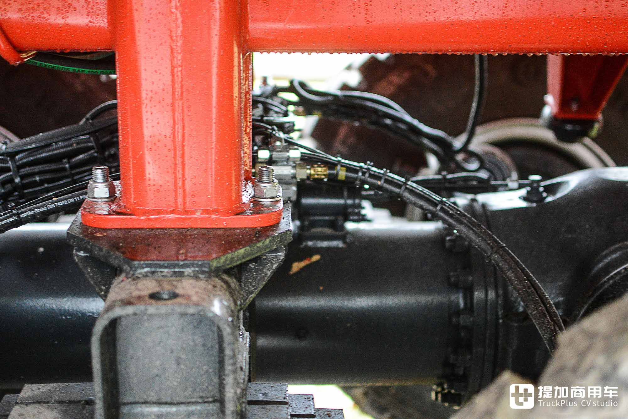 既然采用了中央脊管车架,那太脱拉卡车的另一大精髓:摆动半轴自然不会缺席。得益于这种特殊的结构,车辆的每个车轮均能够独立的进行上下摆动,时刻贴地,保障牵引力。同时,后桥采用了钢板弹簧悬挂,承载能力和可靠性都更加强悍。