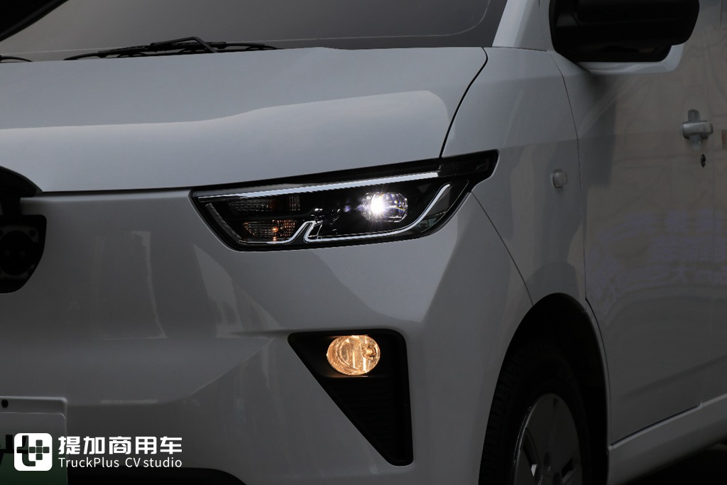 五菱扬光还是行业内首配LED主车灯的车型,它的LED大灯带有透镜的配置,可以再夜间实现更为出色的照明效果。在大灯下方同样带有一颗雾灯,以提升雾天安全性,像这个配置在新能源面包车上是不多的。