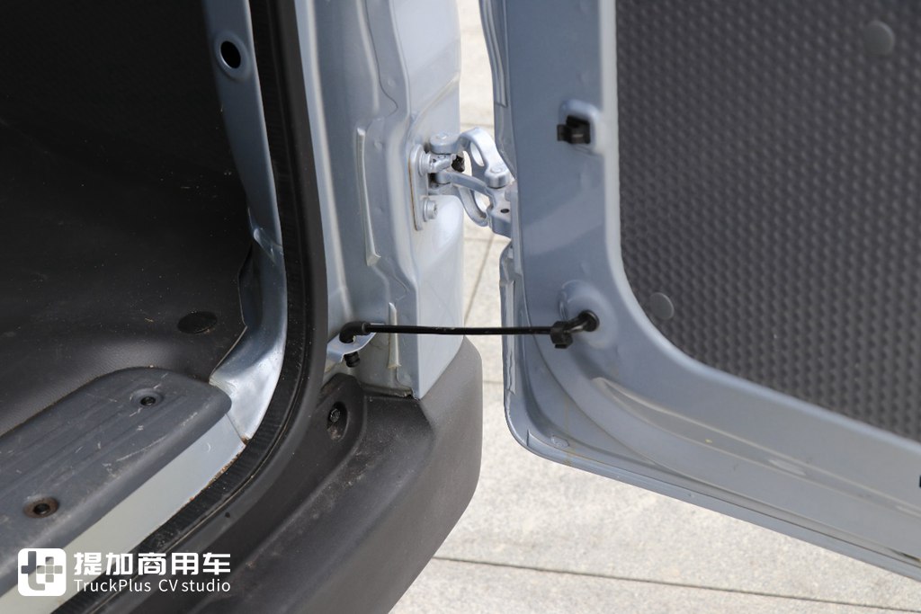 后门的开启角度最大为270°,其带有的限位装置也可以将尾门限制在90°和180°两个角度,以防止尾门在刮风时拍打到旁边的人或车,是一个很人性化的设计。