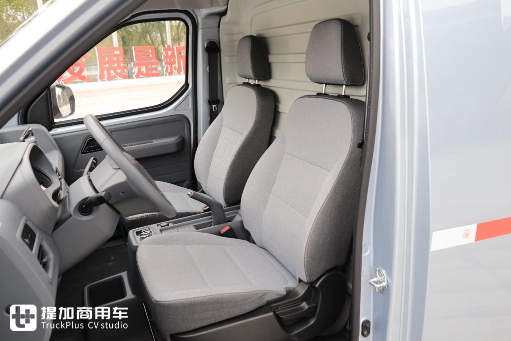 座椅的厚度和填充性均达到乘用车水准,长时间坐起来也不会感觉到累,且前后调节幅度都很大,如果把后方挡板拆掉还能放躺休息,让新能源物流车不再局限于是干活车的形式。