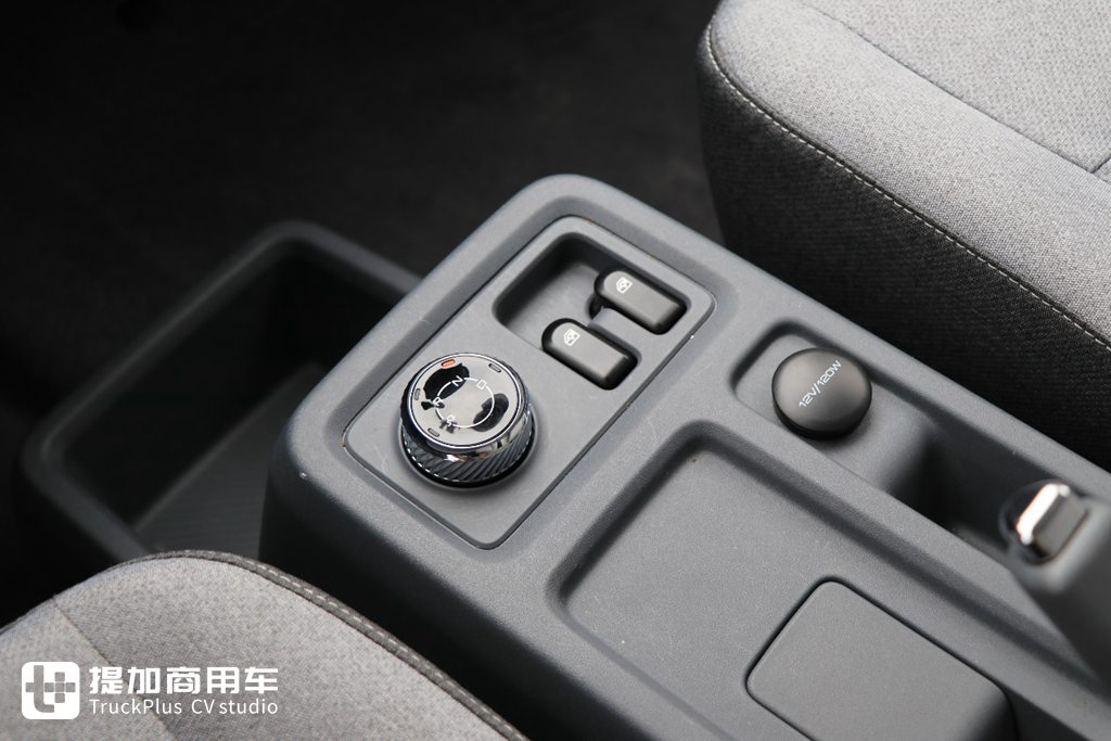 车辆采用旋钮式换挡,升窗按键在座椅两侧区域。