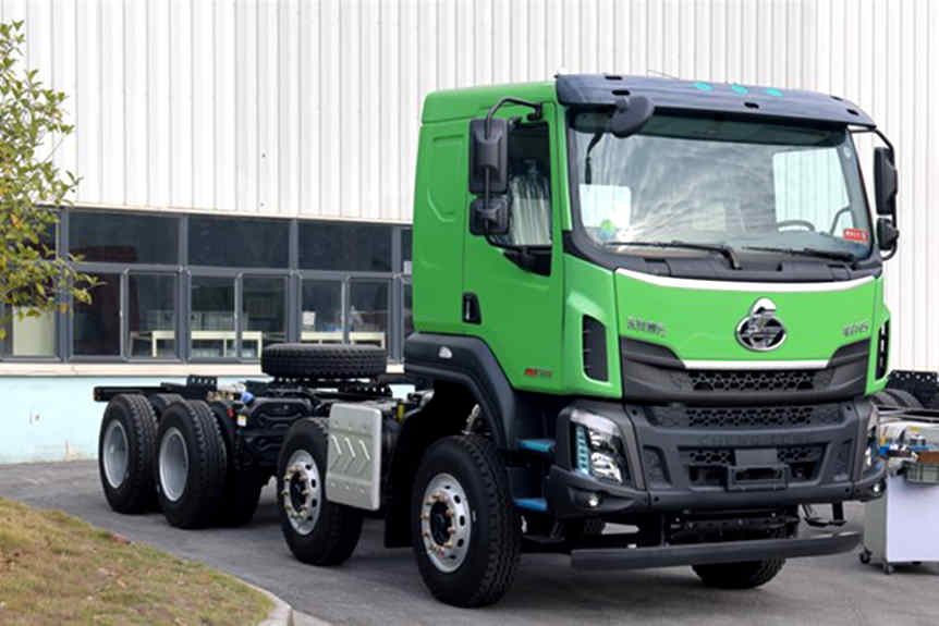 面对复杂工况环境和高载重的渣土运输特点,乘龙H5 8X4轻量化渣土车搭载7.8L国六柴油发动机,最大可达350马力,匹配10挡变速箱,不仅起步有力、动力强劲,还能经济节油,轻松应对工地各种恶劣路况。