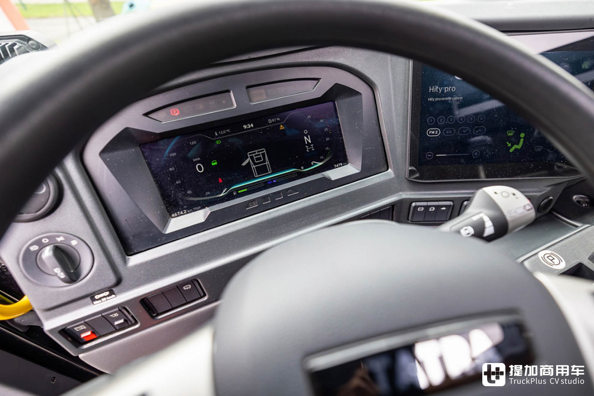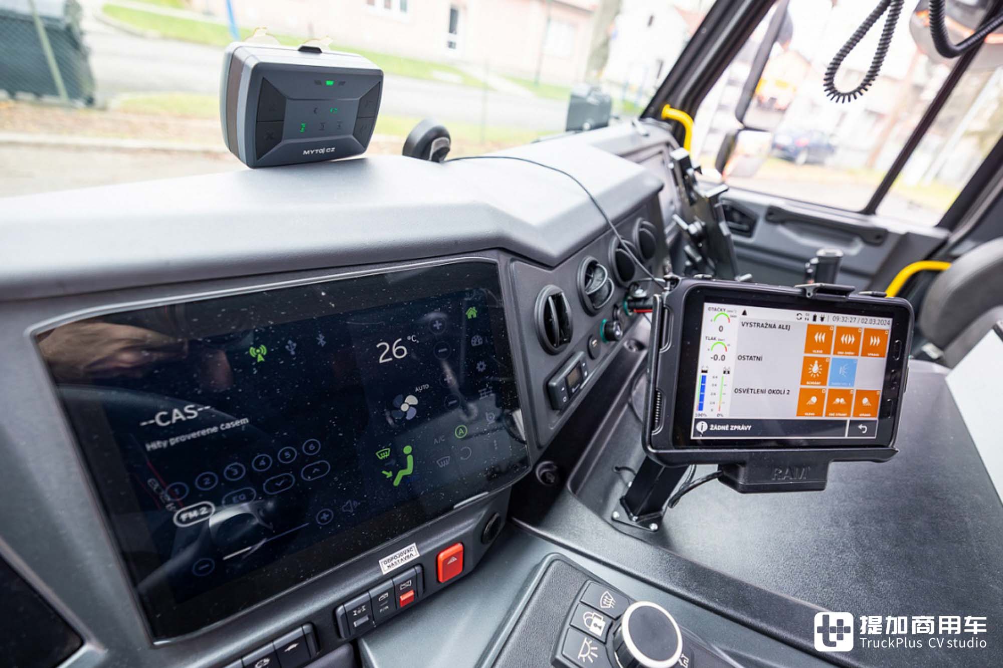 坐进车内:第三代太脱拉Force大量采用了电子控制系统及电子总线系统,智能程度得到了大幅提升。因此,车辆的仪表盘也采用了液晶形式,将各类信息一目了然的展示在驾驶员面前。