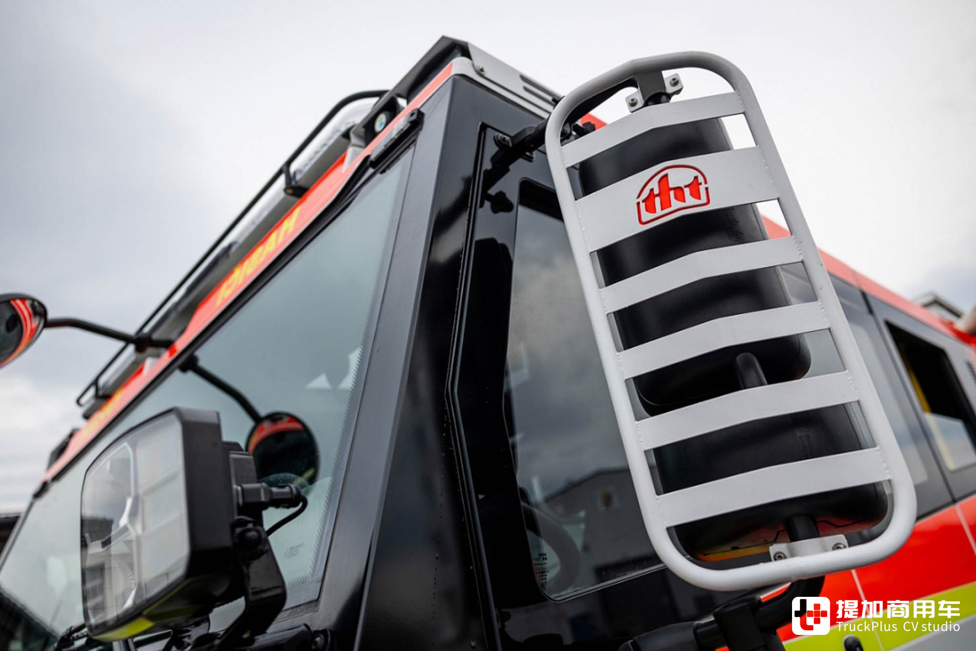 底盘方面,第三代太脱拉Force提供了两种配置:单排驾驶室车型采用经典的Force系列底盘,而双排驾驶室车型的底盘则基于Terra系列卡车,文中这台消防车也是如此。由于双排座驾驶室的长度较长,为了给发动机等部件让出空间,底盘自然也需要作出修改。