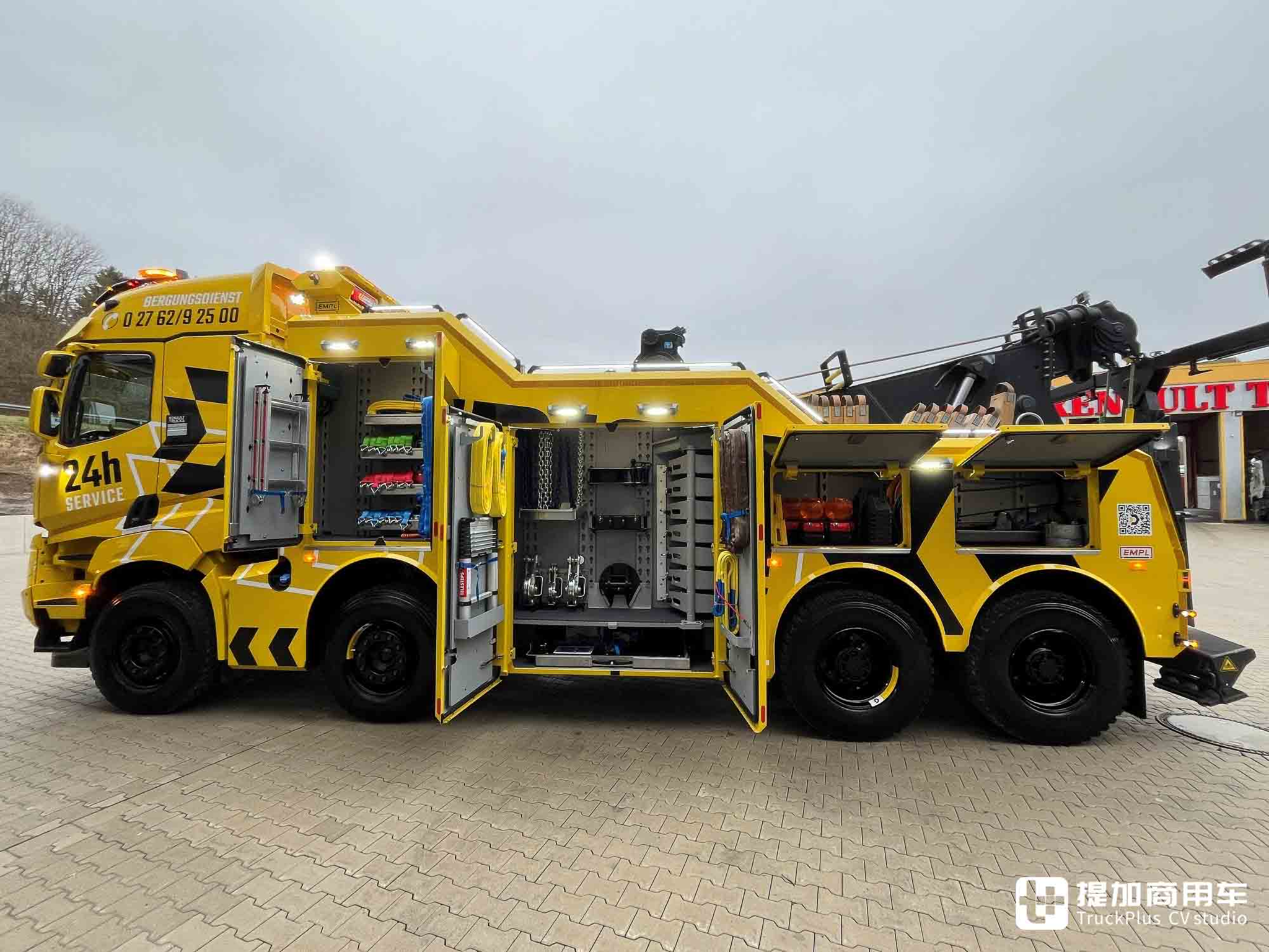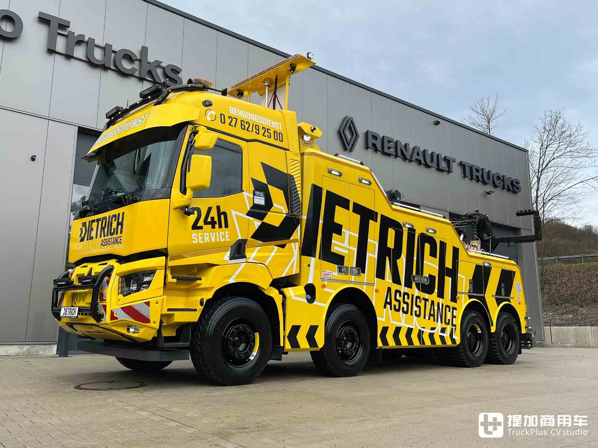 在新车订购的需求之下,Dietrich公司与全球领先的特种车辆制造商:奥地利EMPL安普一拍即合,共同打造了一台独一无二的重型清障车。它基于雷诺K 520底盘而来,采用了特殊的车身配置,堪称欧洲唯一一台此类车型。在今天的文章里,提加就带您来共同领略这台清障车的魅力。