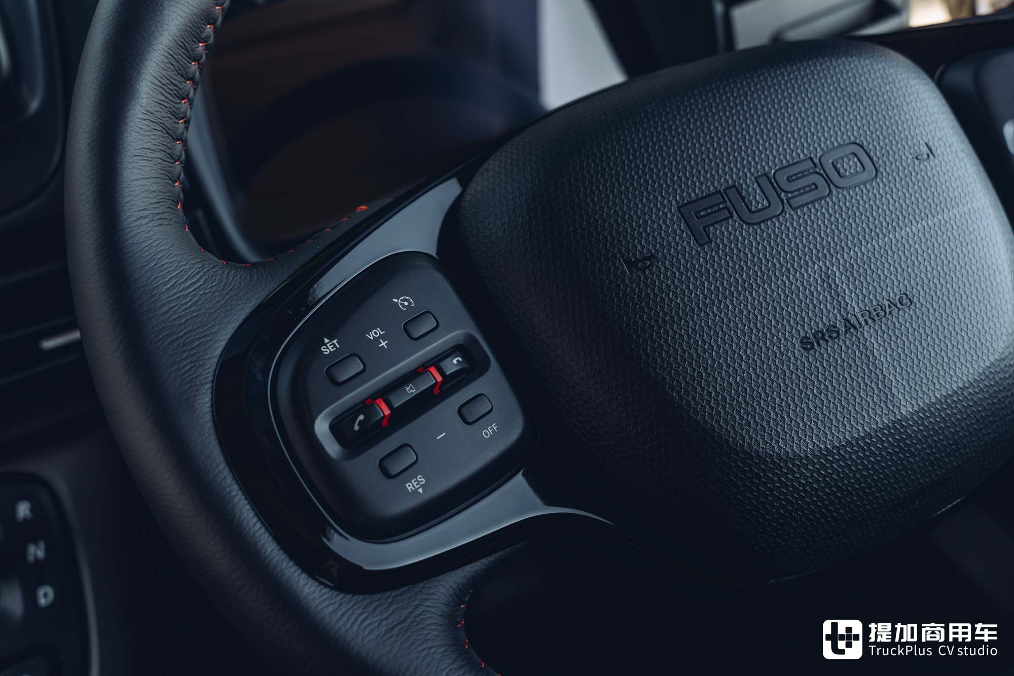 在内饰方面,改款三菱扶桑Canter轻卡同样做出了升级。多功能方向盘上带有多种多功能按键,驾驶员可方便的操控车辆功能,例如定速巡航、接打电话等等。同时,驾驶员也可借助多功能方向盘来控制全液晶仪表盘及新增的多媒体屏幕,提供智能互联功能。