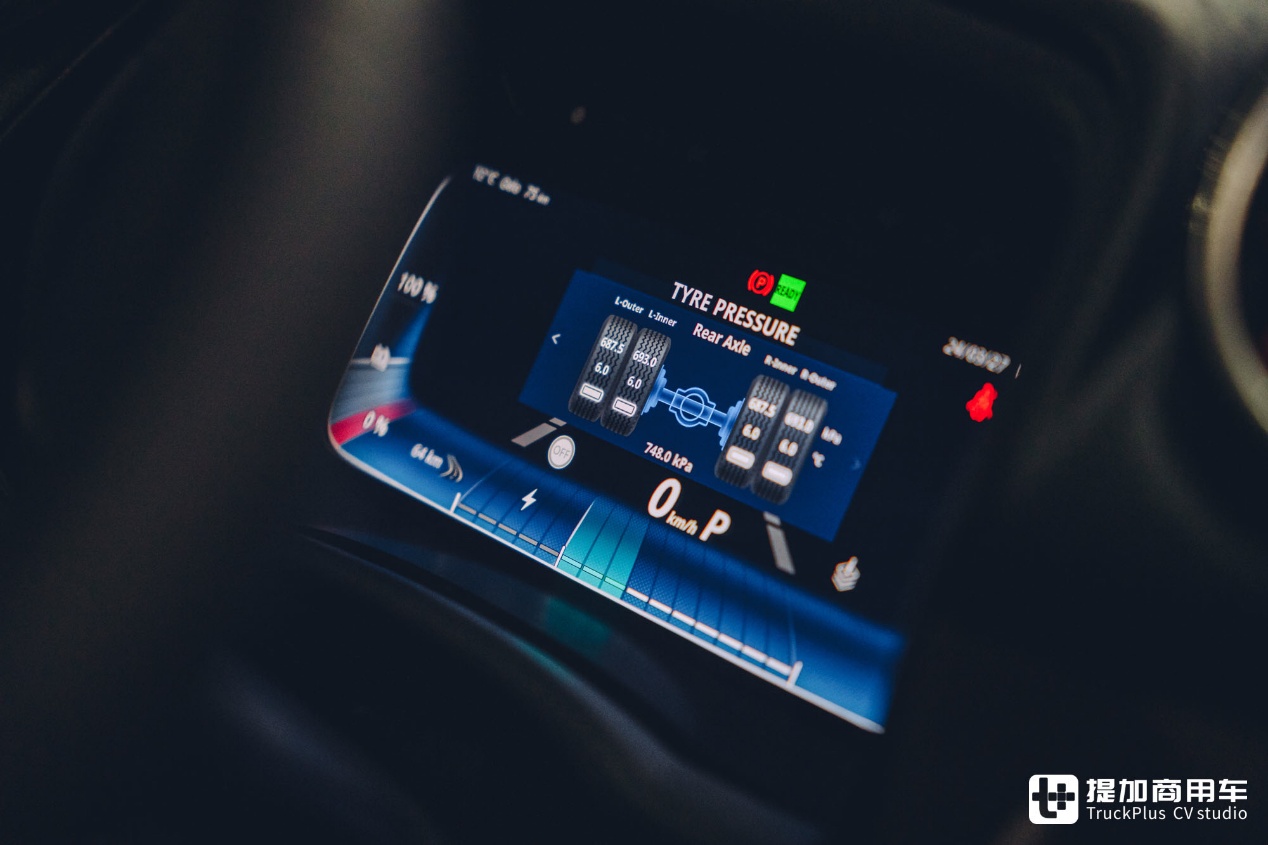 全液晶仪表盘可将各类信息一目了然的展示在驾驶员面前。应欧盟GSR通用安全条例的要求,车辆在仪表盘内增添了胎压面板,供驾驶员实时查看胎压。