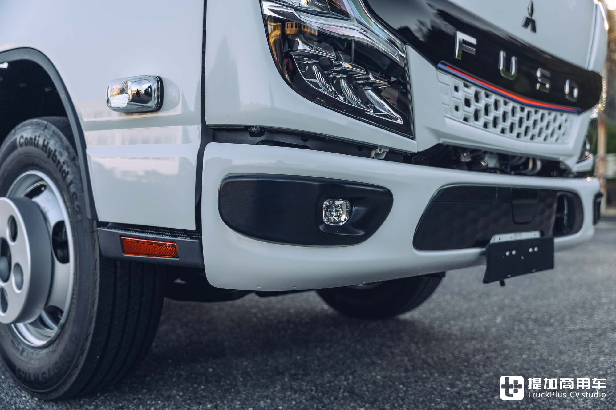 在本次更新中,以柴油为燃料的Canter系列、纯电动的eCanter系列均获得了最新的特性。先从可见的地方开始:本次改款车型对前脸的线条进行了优化,最大的变化集中在保险杠上。新的保险杠变得更圆润,线条边角柔和,显得更精致、更可爱。